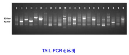 TAIL-PCR (Thermal Asymmetric Interlaced PCR),即熱不對稱PCR,又叫巢式PCR,克服了傳統染色體步移法(如構建文庫步移法、反向PCR法、連接接頭法等)操作復雜、非特異性擴增、連接效率低等弊端。其原理是,根據已知 DNA 序列,分別設計三條同向且退火溫度較高的特異性引物(SP Primer),與經過獨特設計的退火溫度較低的簡并引物進行熱不對稱 PCR 反應。通常情況下,其中至少有一種兼并引物可以與特異性引物之間利用退火溫度的差異進行熱不對稱 PCR 反應,一般通過三次巢式 PCR 反應即可獲取已知序列的側翼序列。如果一次實驗獲取的長度不能滿足實驗要求時,還可以根據第一次步移獲取的序列信息,繼續進行側翼序列獲取。