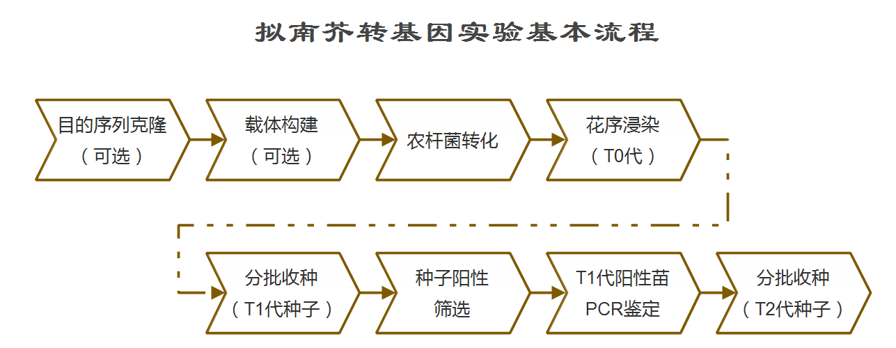 載體構建——農桿菌轉化——花序侵染——分批收取種子及篩選(T0)——T1代陽性苗的PCR鑒定