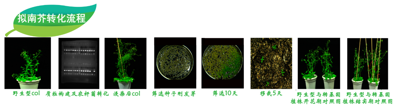 | 轉基因擬南芥篩選鑒定 | 農桿菌介導遺傳轉化、篩選(花序侵染);T0代種子篩選;T1代陽性苗的PCR鑒定 |