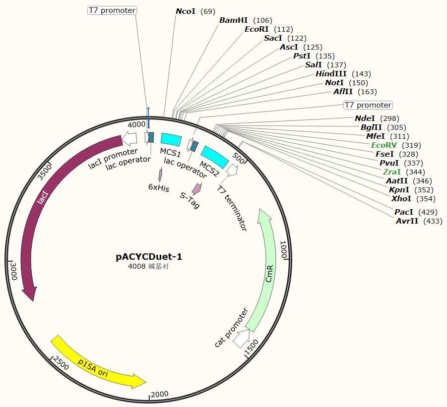 | 載體類型: | 大腸桿菌蛋白雙表達載體,有兩個多克隆位點(雙啟動子) |