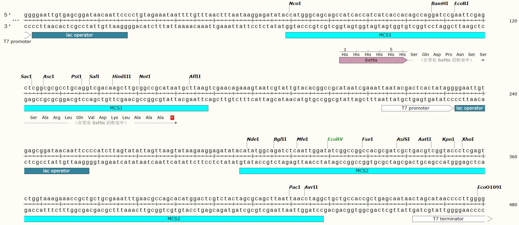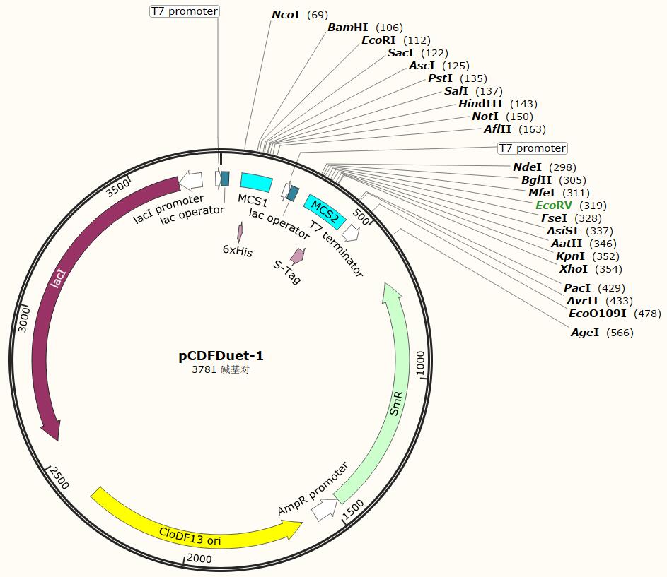| 載體類型 | 大腸桿菌蛋白雙表達載體,有兩個多克隆位點(雙啟動子) |