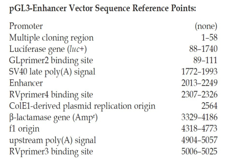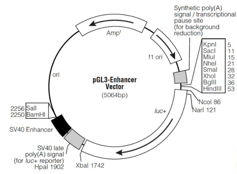 | 載體類型: | 熒光素酶報告載體;哺乳細胞表達;啟動子增強子報告系統 |