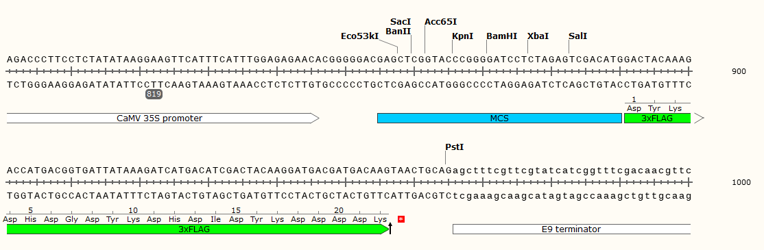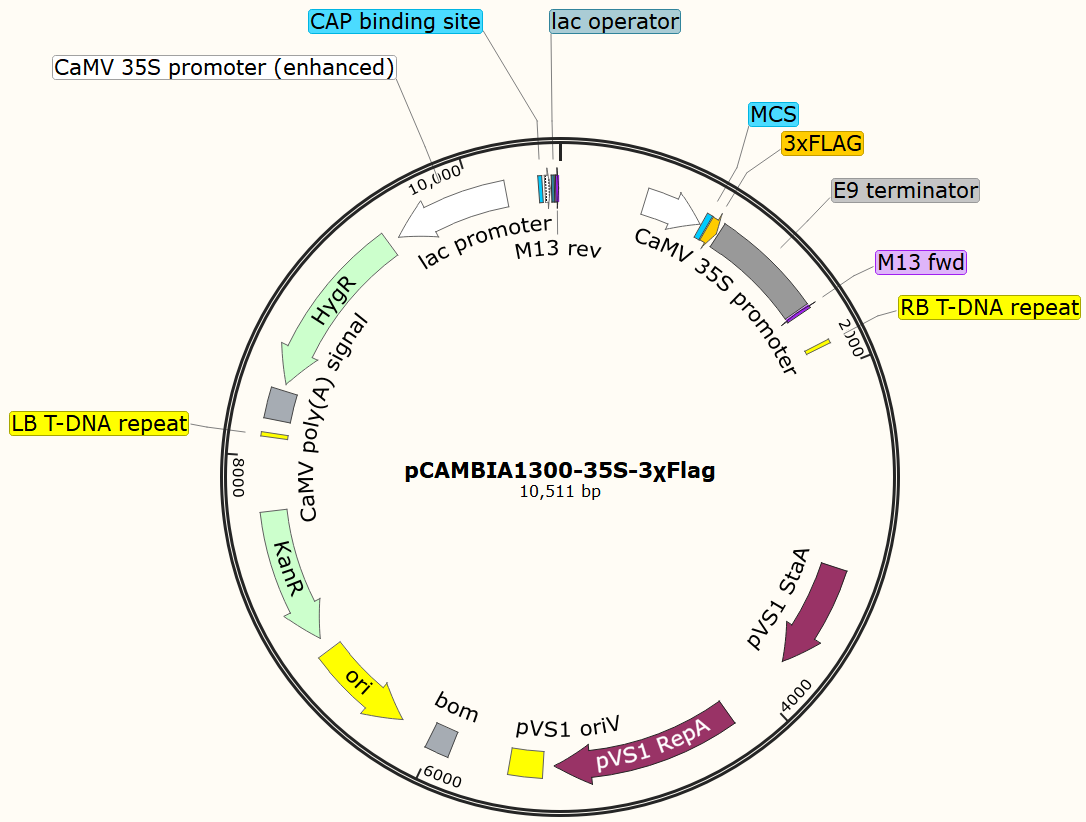 pCAMBIA1300-35S-3XFlag在pCAMBIA1300-35S載體的基礎上改造而來,植物融合表達載體。