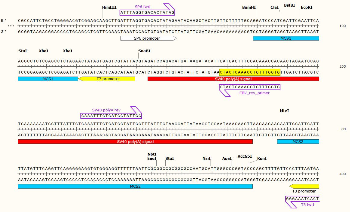 | 3' 測序引物: | EBVR: GTGGTTTGTCCAAACTCATC |