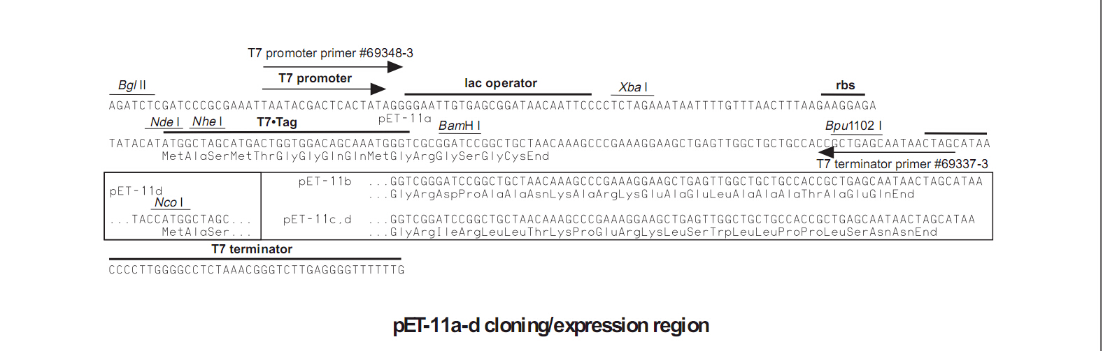 pET-11a,b,c之間僅閱讀框(讀碼框)不同,彼此相差1個bp;pET-11d載體的多克隆位點處不含NdeI切割位點.