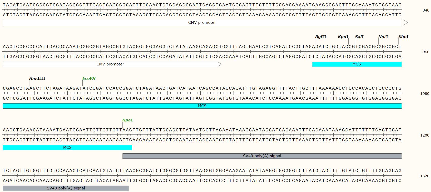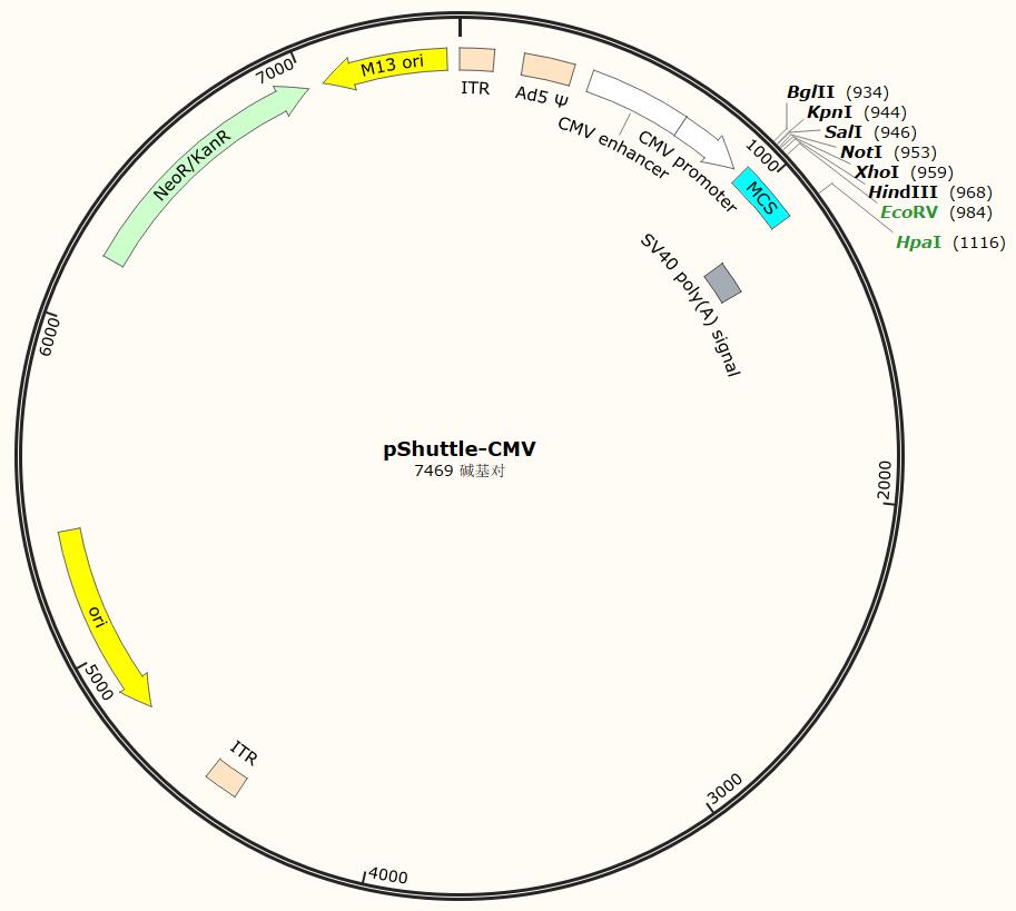 | 3' 測序引物: | pShuttle-CMV-R: GTGGTATGGCTGATTATGATCAG |