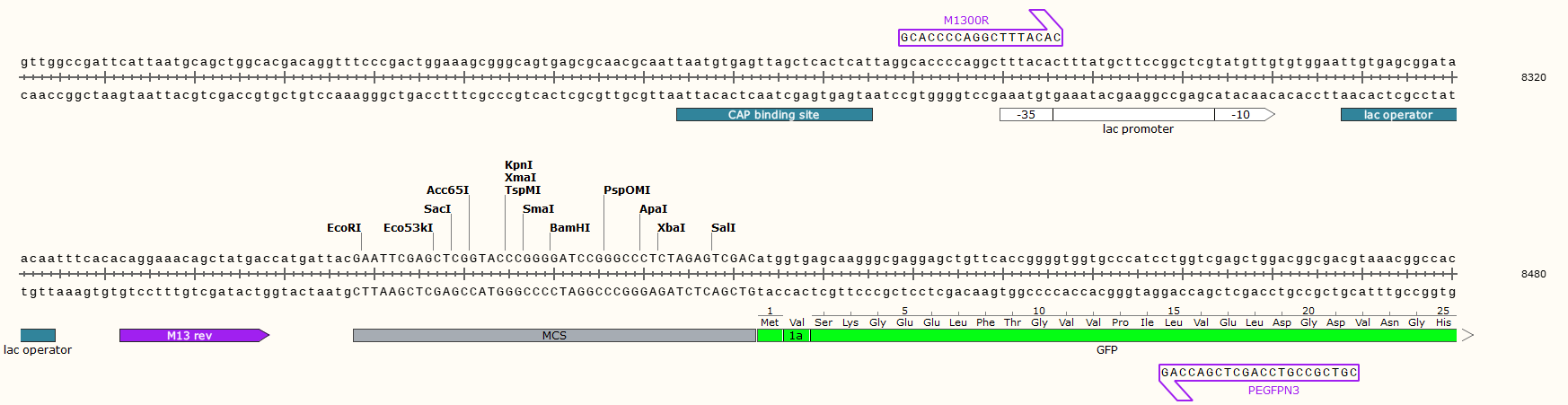 | 3' 測序引物: | PEGFPN3': CGTCGCCGTCCAGCTCGACCAG |