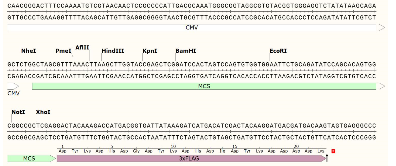 | 3' 測序引物: | 3XFlagR: 5’-CTACTTGTCATCGTCATCC-3’ |