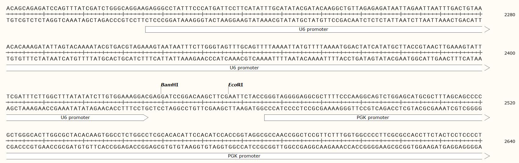 | 5' 測序引物: | U6:ATGGACTATCATATGCTTACCGTA |