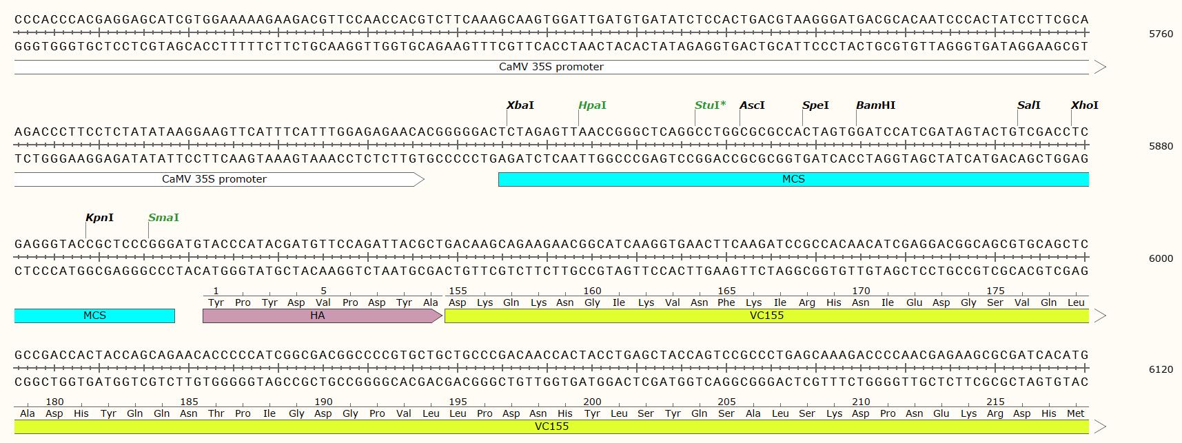 | 5' 測序引物: | pbi121(35s): GACGCACAATCCCACTATCC |