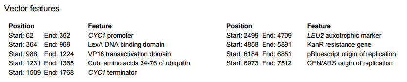 | 3' 測序引物: | CYC1ter: GGTTGTCTAACTCCTTCCTT |