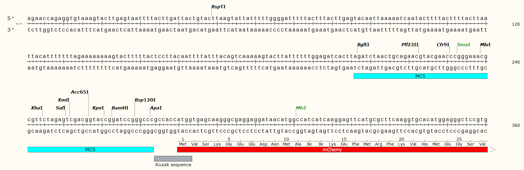 | 3' 測序引物: | mCherryR:5’-CCTCGTAGGGGCGGCCCTCGCC-3’ |
