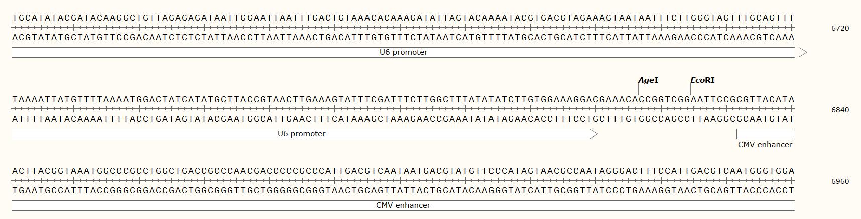 | 5' 測序引物: | U6:ATGGACTATCATATGCTTACCGTA |