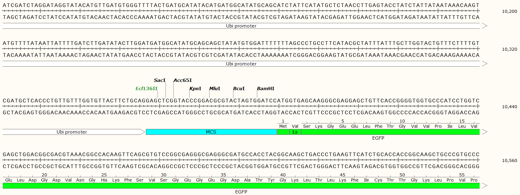 | 3' 測序引物: | PEGFPN3': CGTCGCCGTCCAGCTCGACCAG |