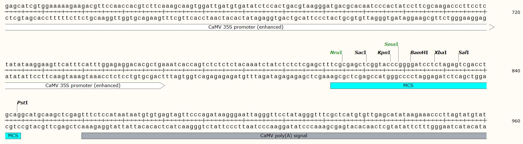 | 5' 測序引物: | 35S: GACGCACAATCCCACTATCC |