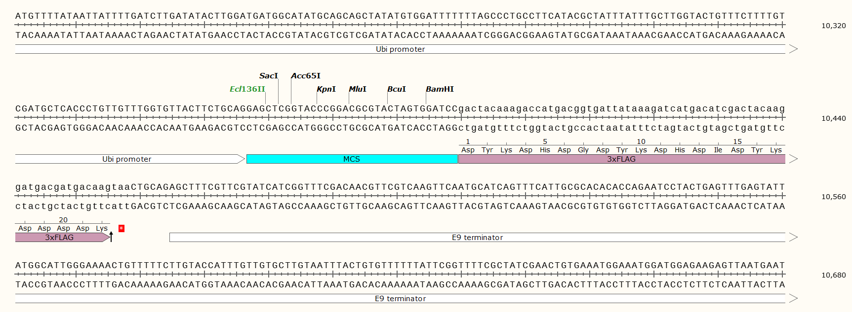 | 3' 測序引物: | 3XFlagR: CTACTTGTCATCGTCATCC |