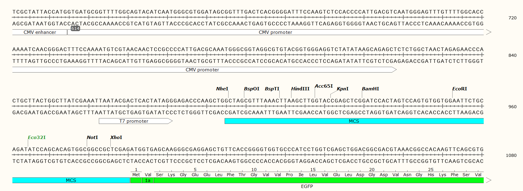 | 3' 測序引物: | PEGFPN3': CGTCGCCGTCCAGCTCGACCAG |