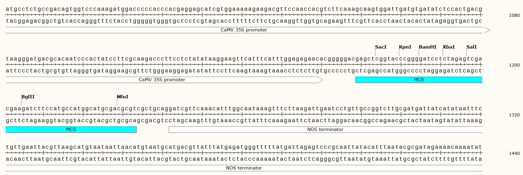 | 5' 測序引物: | 35S: GACGCACAATCCCACTATCC |