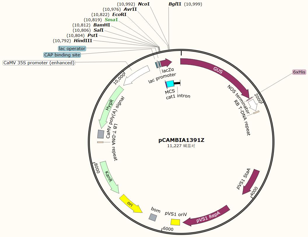 載體類型: 植物過表達載體 載體抗性: Kan 啟動子: CaMV 35S 表達水平: 低拷貝 載體大小: 11227bp 克隆方法: 多克隆位點,限制性內切酶 5' 測序引物: / 3' 測序引物: / 備注: 如有侵權請產權持有人盡快聯系法務15927229196