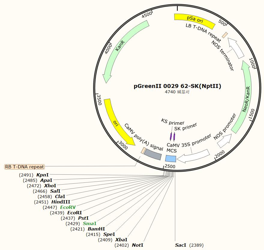 載體類型: 植物表達載體 載體抗性: Amp 啟動子: CaMV 35S 載體大小: 4740bp 克隆方法: 限制性內切酶 5' 測序引物: / 3' 測序引物: / 備注: 如有侵權請產權持有人盡快聯系法務15927229196