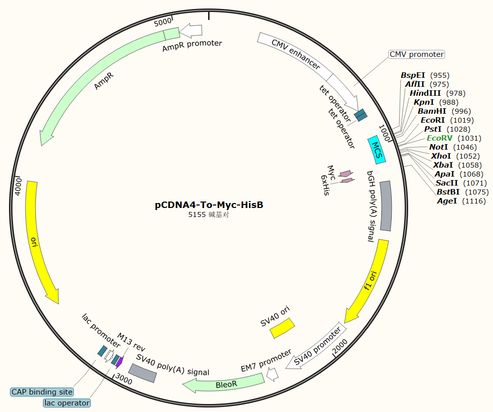 載體類型: 哺乳動物細胞表達載體 載體抗性: Amp 篩選標記: Zeo 啟動子: CMV 載體大小: 5155bp 克隆方法: 多克隆位點,限制性內切酶 備注: 如有侵權請產權持有人盡快聯系法務15927229196