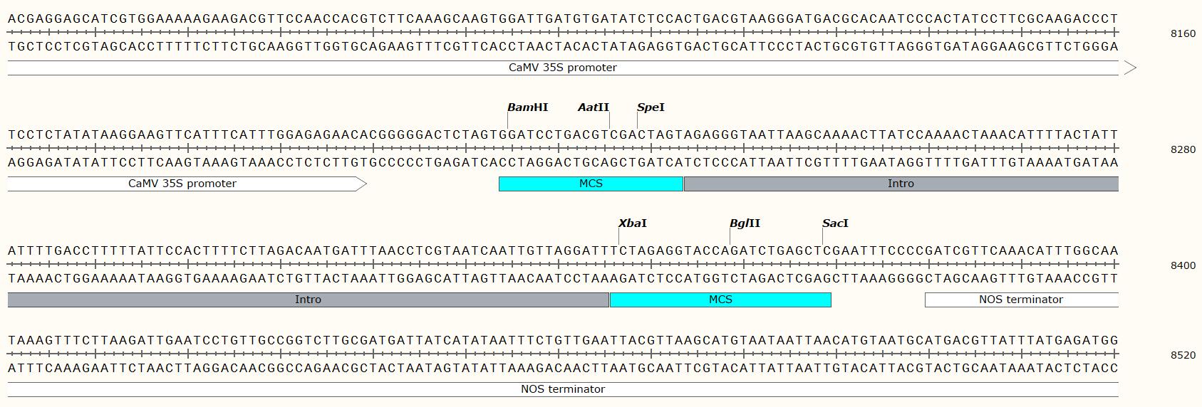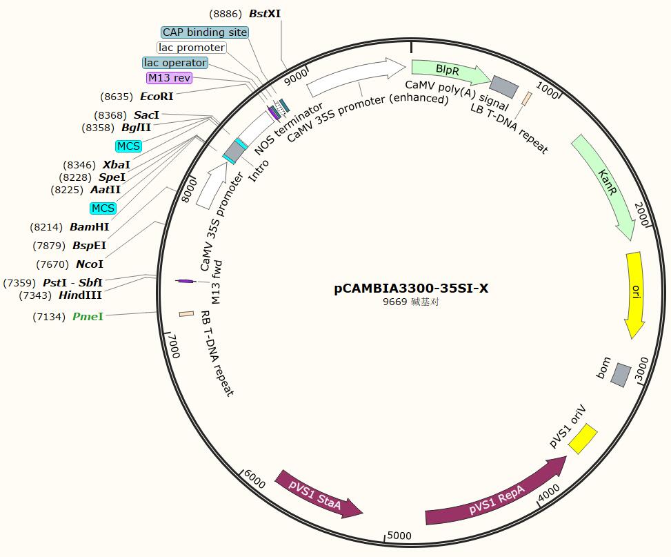 載體類型: 植物表達載體 載體抗性: Kan 啟動子: 35S 載體大小: 12480bp 克隆方法: 多克隆位點,限制性內切酶 5' 測序引物: / 3' 測序引物: / 備注: 如有侵權請產權持有人盡快聯系法務15927229196