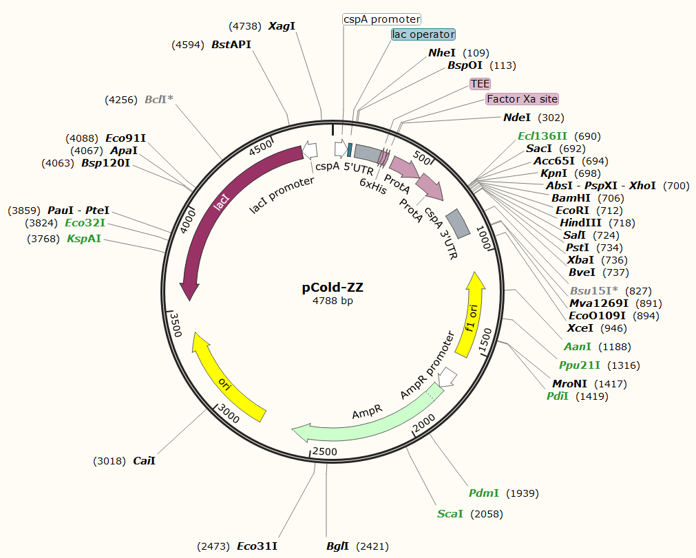 | 載體類型: | 大腸桿菌蛋白表達載體,低溫誘導表達載體 |