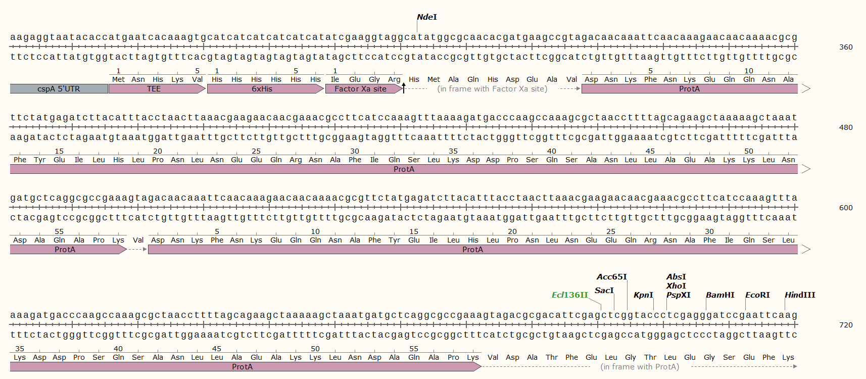 ZZ domain總長348bp,由兩段完全一樣的序列組成,改造后為TEE+His+Factor Xa+ZZ+多克隆位點。