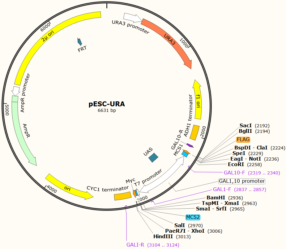 帶有URA3標記的酵母表達載體,用半乳糖調節表達和標記多達2個基因。