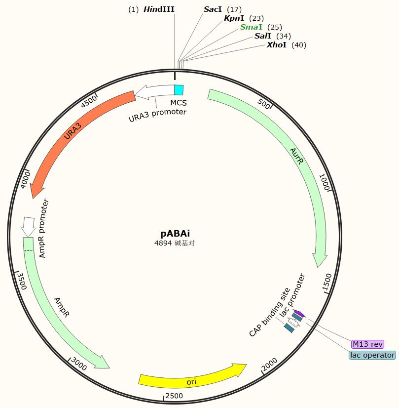 pABAI質粒是一種單雜交酵母報告質粒,可以識別和分析蛋白質與DNA之間的相互作用,而不僅僅是證明蛋白之間的相互作用。這個質粒具有AbA抗性因而具有很強的篩選能力,可極大地降低背景水平。