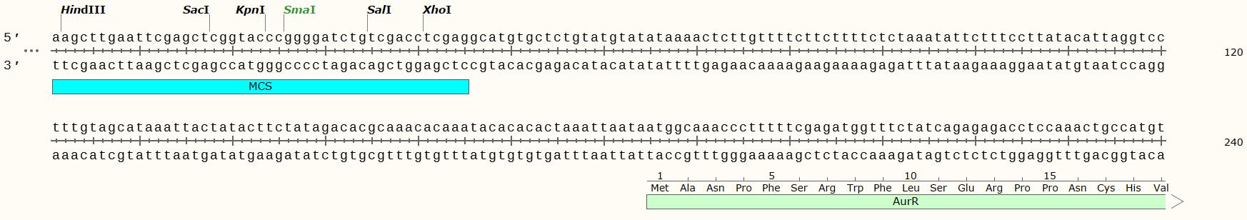 Insertion of your target sequence may alter the basal expression of AUR1-C. Therefore, before starting a onehybrid analysis, basal levels of AUR1-C should be determined as described in the User Manual.
