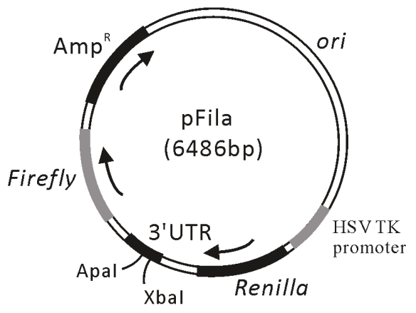 哺乳動物干擾載體,雙熒光素酶報告基因。